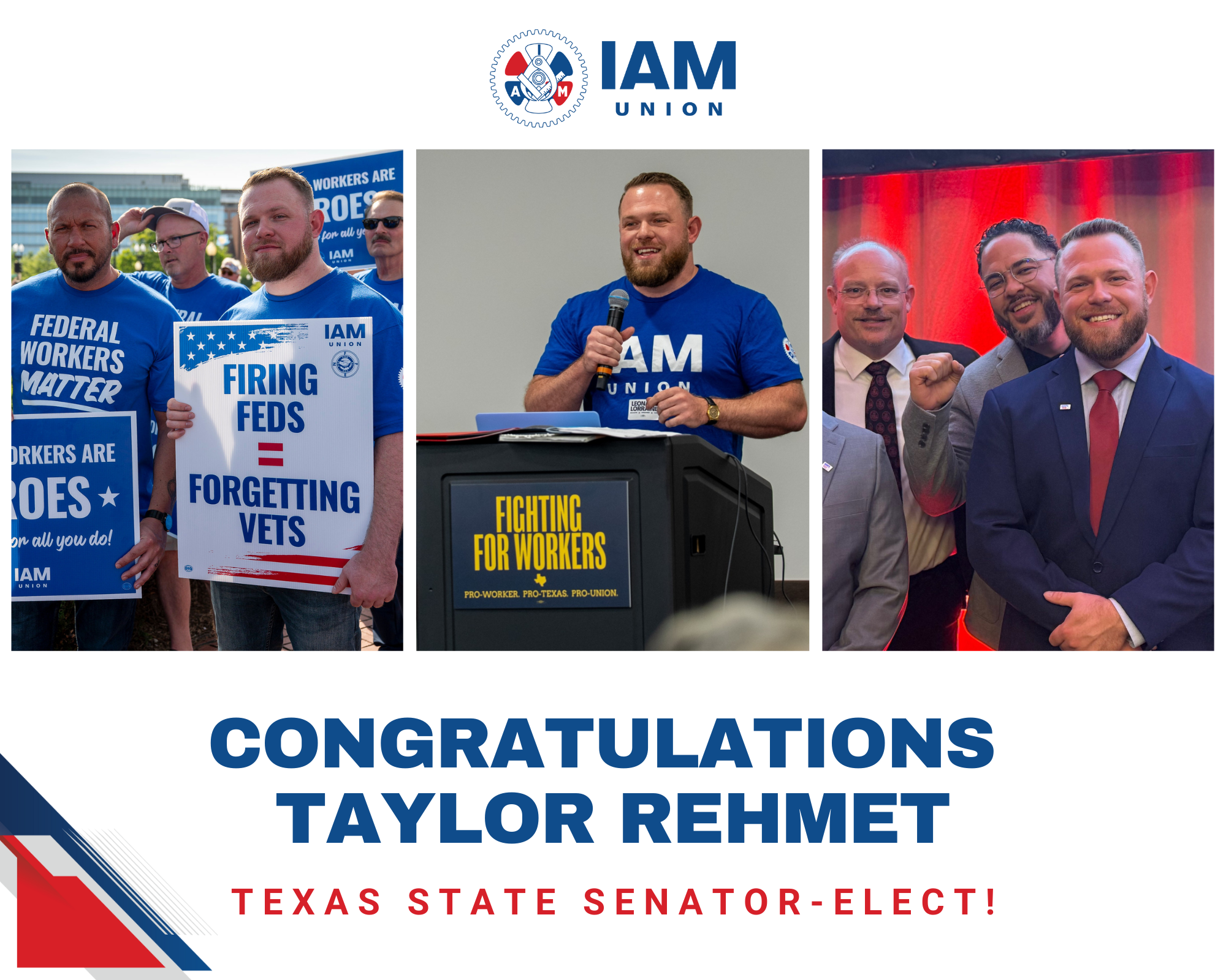 The IAM Union proudly congratulates Taylor Rehmet, an IAM District 776 member and labor activist, on his election to represent Texas Senate District 9. Rehmet currently serves as President of IAM Local 776B and President of the Texas IAM Union State Council. A U.S. Air Force veteran, skilled machinist, and community organizer, Rehmet has been …